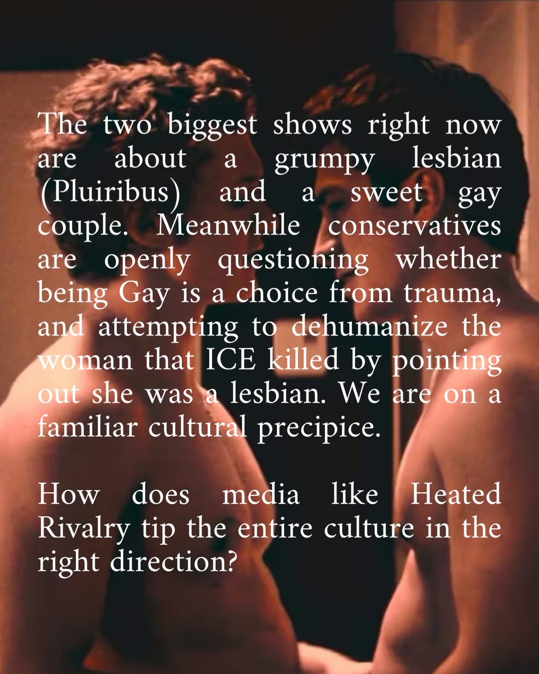 Last night, Heated Rivalry’s Hudson William showed off his bottom arch to Jimmy Fallon. I’ve waited to jump on the HR discourse; I wanted to see if it would fizzle out or if it had legs. Well, those legs are dancing well into 2026. I just checked and HR is still the #1 show on HBO. Let’s unpack the questions this poses, overlaid on the horniest scenes of the show…