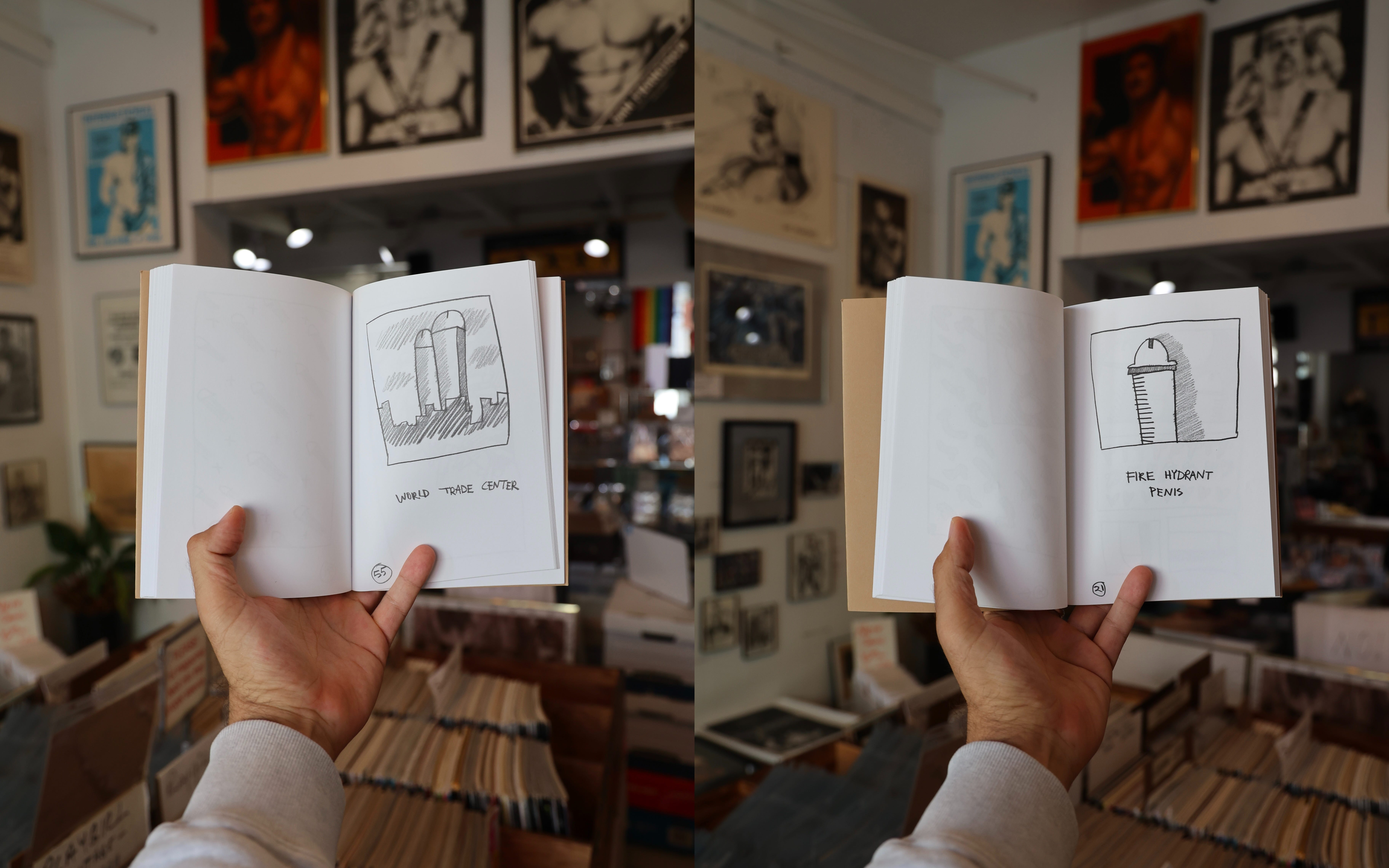 Published by Zurich-based Nieves, the book is simply put together with a single drawing on each double-page spread. His line drawings are sparse, yet the texture from Haring’s sporadic and scratchy markings gives the series energy. Some of the artist’s interpretations are quite literal, like his drawing of the Twin Towers reimagined as two erect penises. Others take a more abstract approach, like the image titled Drawing penises in front of The Museum of Modern Art, where phallic shapes obstruct our view of the building, and another drawing that shows a frenetic mass of penises to represent the hubbub of New York’s streets while emulating futurist paintings. Throughout his work, Haring used this playfulness to tap into more serious issues, and this particular series of works offers a fascinating and tongue-in-cheek glimpse into the artist’s later work. [source: itsnicethat.com]